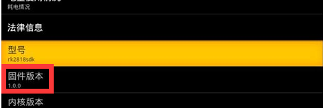 3、进入后就可以查看到关于安卓平板电脑型号、固件版本号、内部版本号等相关信息(如图)