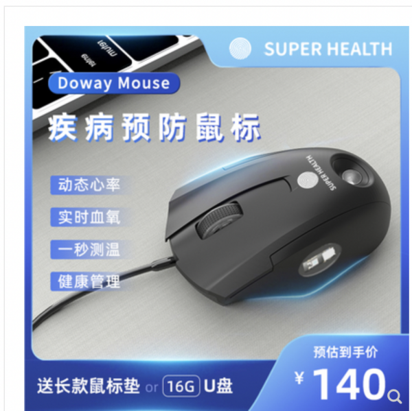 我了解到一款叫什么基预多维的智能健康鼠标,立意比较新颖。初步了解下,外形与普通鼠标没什么两样,主要多了能测血氧和体温功能,说是比较适合上班族使用,能实时监测身体状况,形成健康报表。说什么可以提早发现潜在疾病,说得就很高大上。