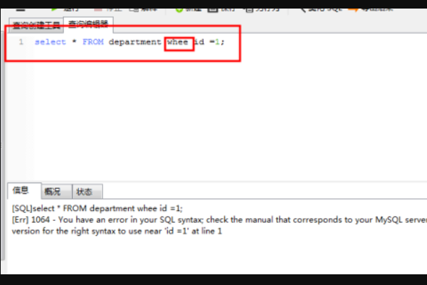 说明拼写出现错误。以错误拼写为例讲解mysql数据库出现错误代码1064的情况: