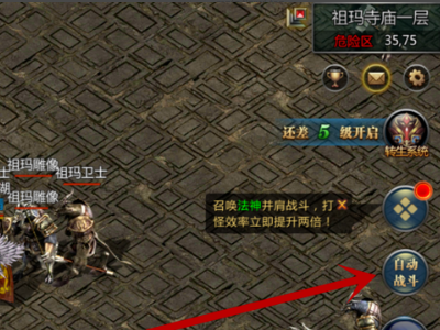 5、之后我们即可去玩游戏啦,在攻击怪物的时候,只需要点击右侧的自动战斗按钮,角色就会自己进行战斗,如图所示。