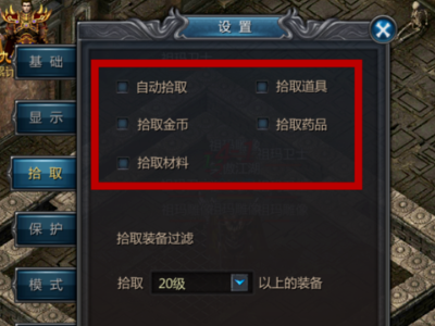 传奇内挂自动拾取物品怎么调