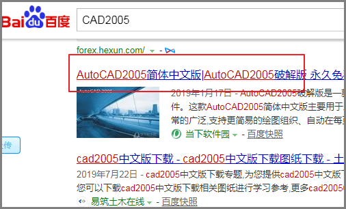 1、用百度搜索引擎搜索CAD2005进行下载。