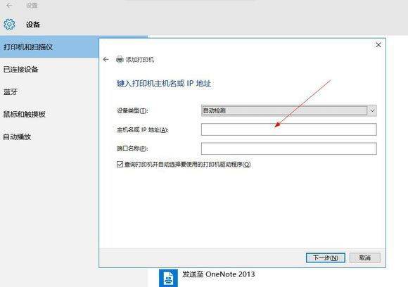 五、在主机名或ip地址后面输入网络打印机的ip,点击下一步;
