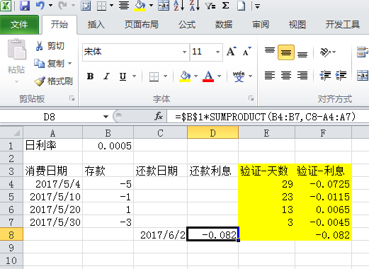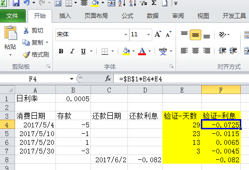 关于使用WPS表格计算信用卡的利息问题