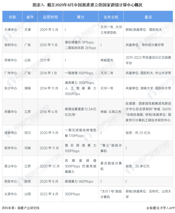 截至2023年8月,我国共有11个国家级超算中心,其中,广东和江苏为双超算中心省份,广东有国家超级计算深圳中心和广州中心,江苏则有国家超级计算无锡中心和昆山中心。同时,天津、山东、湖南、四川、河南、陕西、山西等省市也有国家级超算中心分布。
