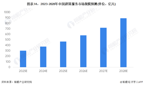Sullivan预测,2022-2025年我国超算服务市场规模复合增速约24.1%,若持续保持这一增速发展,到2028年,中国超算服务市场规模将接近900亿元。