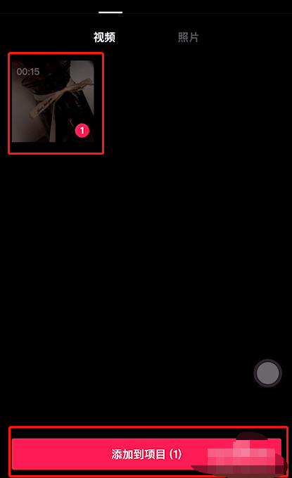 2、选择视频素材,之后点击底部添加到项目按钮。