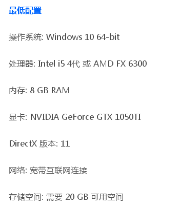 根据游戏的要求,最低的硬件配置要求如下,只要达到就能玩,当然,硬件配置越高越流畅。