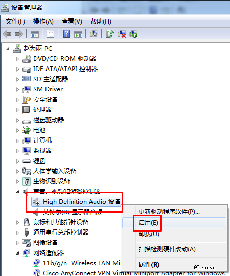 如果要启用,右键单击此设备,选择“启用”: