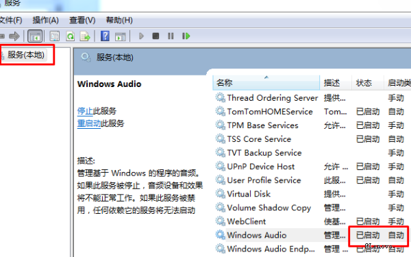 4、下图中,“Windows Audio”服务的状态是正常的。