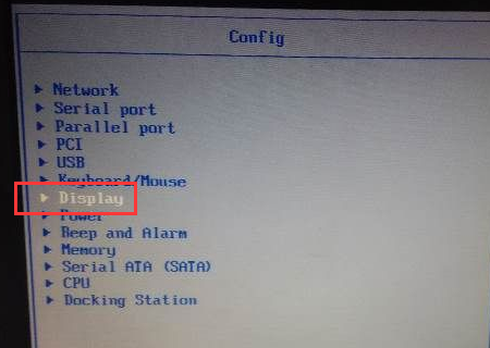 4、继续在神舟战神Z7-CT7NA笔记本的“Config”页面里,选择“Dispaly”选项。