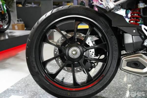 搭配的轮胎为前110/70 R17、后140/60 R17的正新CST Migra S1半热熔,对于入门级仿赛在街道和综合场景下的抓地力需求已经够用,如果后期有更运动的赛道需求可以自行更换升级成在优质路面上抓地力更高的S3。