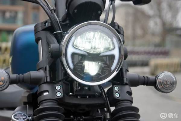 在配置细节上,我们会发现两款车在使用非常接近的配置形式同时,国产车型开始对日系同类产品形成些许反超之势。比如灯光方面,CM300和RA250都采用了巡航车常见的经典圆形头灯并使用LED发光单元,但CM300采用了成本更低的反射式灯碗方案,反观RA250则为近光头灯配备了铺光均匀度更好的透镜。
