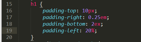 按照上、右、下、左的顺序分别设置各边的内边距,各边均可以使用不同的单位或百分比值,例如: