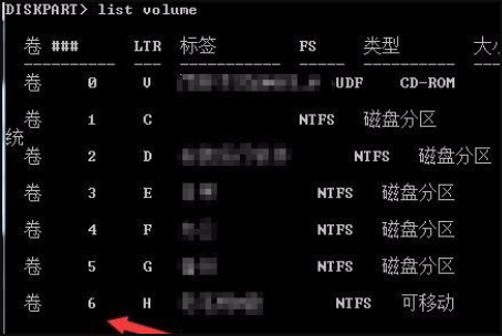 5、然后在权重下面会列出所有当前磁盘的卷标,可以看到U盘的卷标是6。