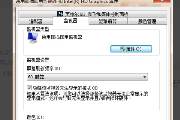 7、在该对话框中,有个监视器设置,可以对屏幕刷新频率进行选择。