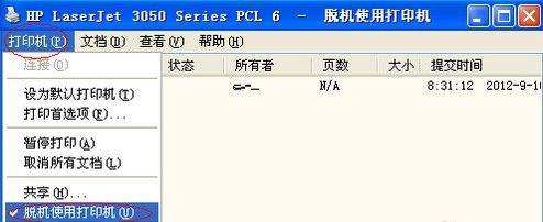3、第三步:可以单击打印任务窗口中的“打印机”菜单,并选择“脱机使用打印机”即可。如下图所示: