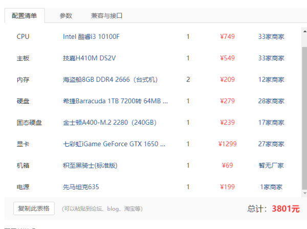 下图是详细配置图,报价为网络参考价,由于图中硬盘型号不明,由本人自动补全,如需调整可自行计算。