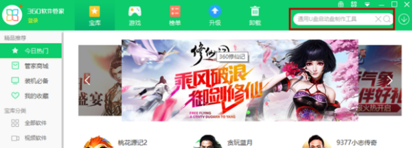 1,打开软件管家,在搜索栏输入“通用U盘启动盘制作工具”并搜索。