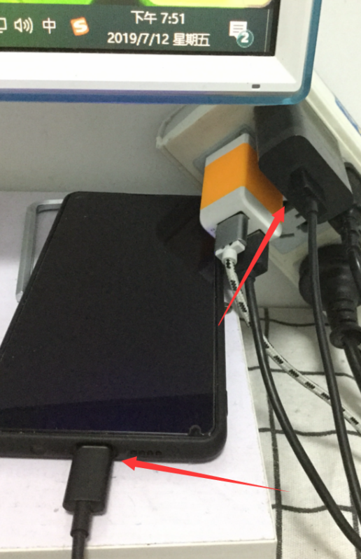 2、将充电器插入插排,数据线插入小米MIX 2S手机里,如下图所示: