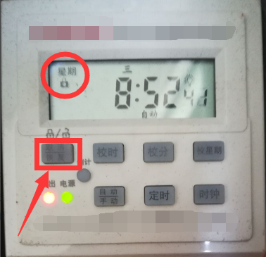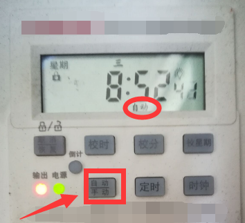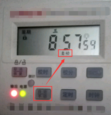 4.设置好开关机时间后,按“自动/手动”按钮,调至“自动”,就可以定时开关机。