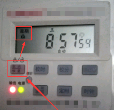 1、按恢复取消键,按3次,再按时间控制,on是开off是关,显示on的时候,按效时再按效分,此时的时间为开灯的时间。
