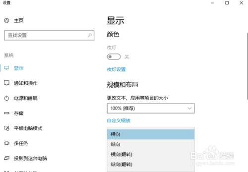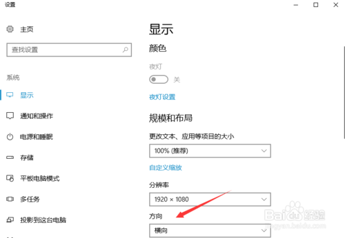 3、展开后,可以看到可以设置屏幕显示方向了,将屏幕方向调到正常显示状态即可。