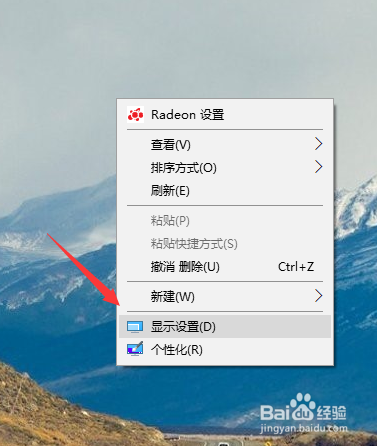 1、右键点击屏幕,然后选择显示设置,如图所示。