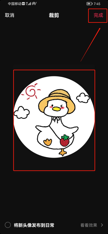 4、更换头像:点击页面右上角“完成”,即可更换头像。
