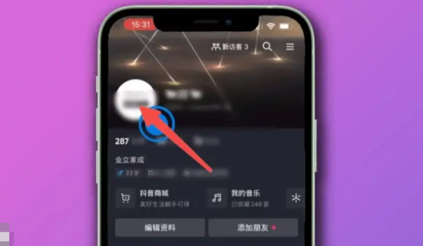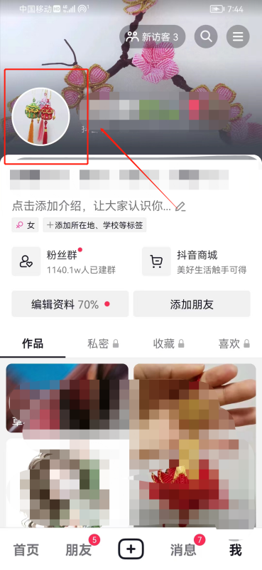 1、点击头像:打开抖音个人主页,点击左上角“个人头像”。