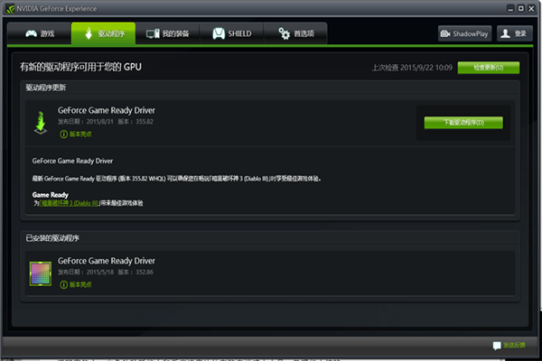 N卡的用户早先应该就安装了N卡自带的Nivida Experience,能够检测驱动、更新以及识别电脑上的游戏并且进行优化的程序。