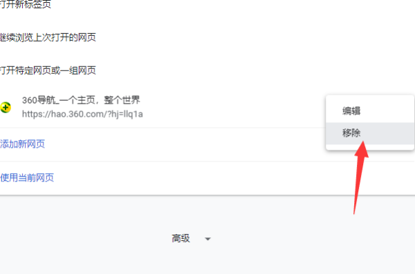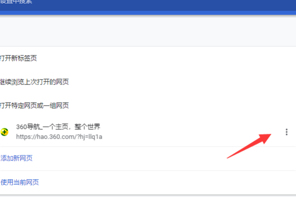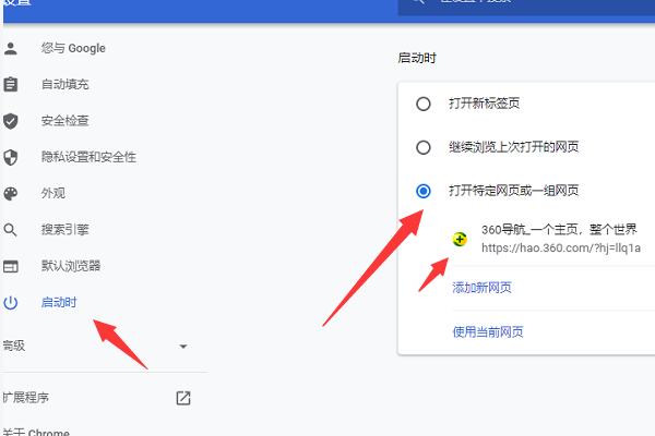 5、在出现的设置界面中点击启动时,可以看到之前设置的360导航为该浏览器打开时的页面。