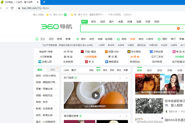2、页面跳转以后可以看到在打开的浏览器界面中进入到了360导航。