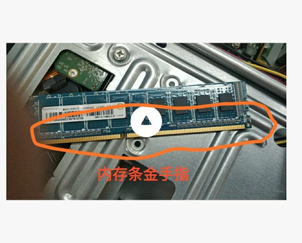 双手拨开内存条卡扣,拆下内存条,用一块干净的橡皮擦来回擦干净内存条的金手指。