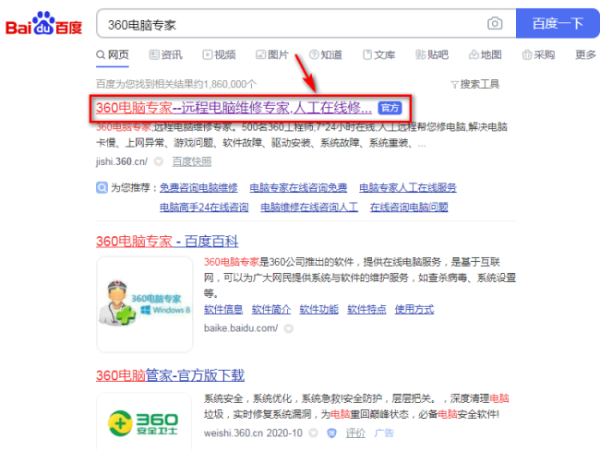 1、打开电脑浏览器,百度搜索【360电脑专家】。