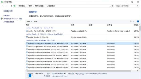 在左侧,选择“查看已安装的更新”,然后选择“安装时间”,按安装日期对更新进行排序以查看最新更新。