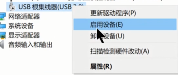 4、最后再执行“启用”操作,USB无法识别的问题解决。