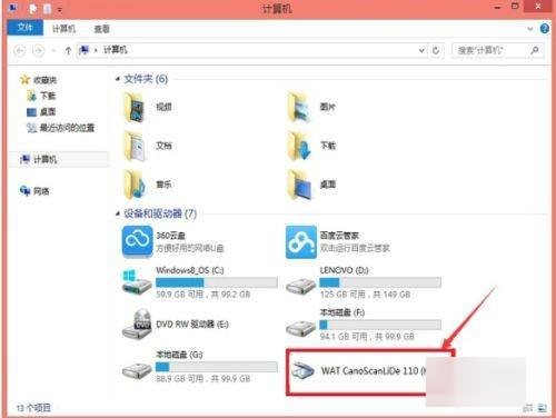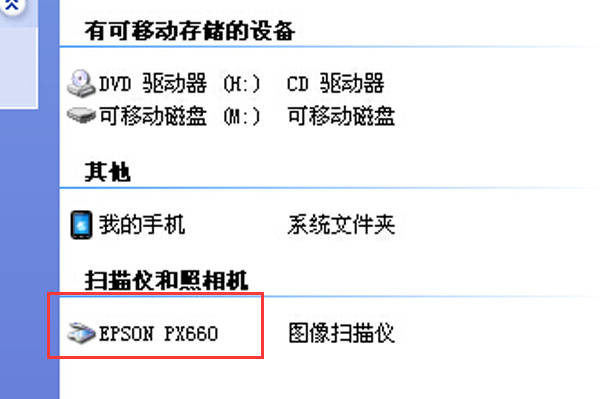 1、将需要扫描的文件放置在epson扫描仪的盖板下面,在装有epson扫描仪的电脑上打开我的电脑,可以看到epson扫描仪。