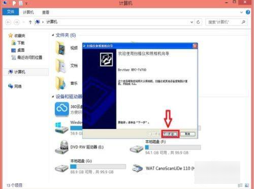 3、此时在弹出的扫描对话框中点击下一步按钮。