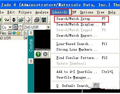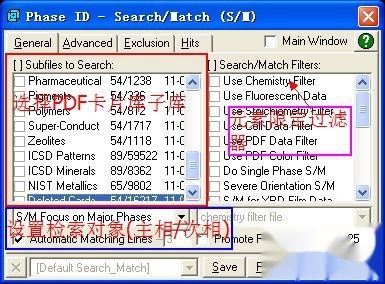 注:在检索结果区从上至下列出最可能的 100 种物相,一般按“FOM”由小到大的顺序排列,FOM 是匹配率的倒数。数值越小,表示匹配性越高。