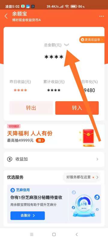 你好。支付宝重新下载后。使用自己原先的账号和登录密码登录支付宝。登录成功后,点击余额宝按钮。再点击总金额右边的小按钮。这个小按钮像人的眼睛眉毛。点击后就可以看到余额宝里面的钱了。