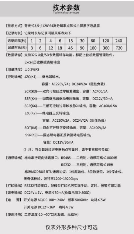 ★支持RS485、RS232串行接口,采用标准MODBUS RTU通讯协议