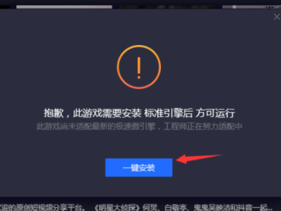 4、系统提醒此游戏需要安装标准引擎后方可运行,点击一键安装。