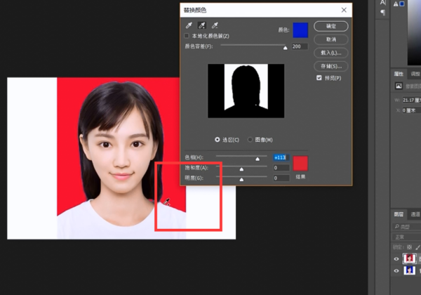 把红底照片换成蓝底,方法如下: