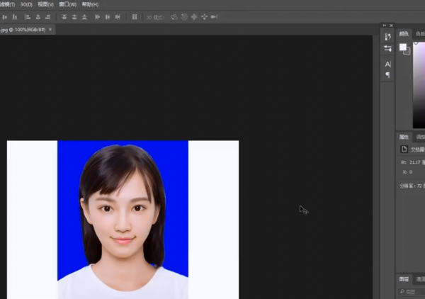 1、用Photoshop软件把需要换底色的证件照打开,并添加到新建的图层中;