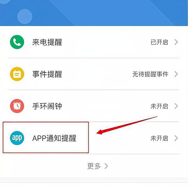 4、打开【小米手环3】后,找到【APP通知提醒】,点击进入;