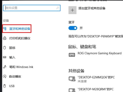 4、选择蓝牙和其他设备,点击添加蓝牙或其他设备。