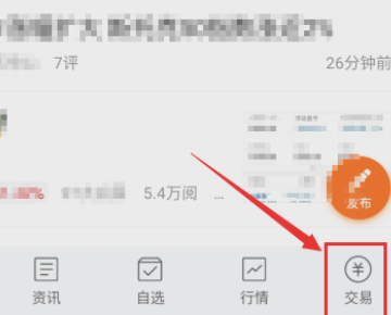 2、进入东方财富后,在下方导航栏上点击“交易”,如下图所示。