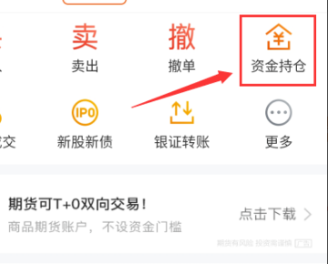 3、打开“交易”页面后,点击右上方“资金持仓”,如下图所示。