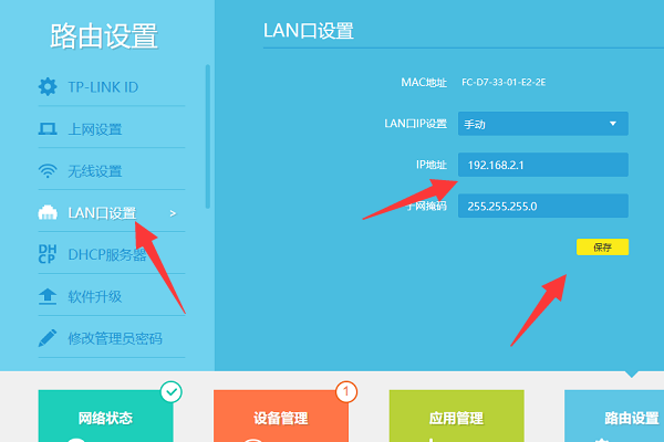 可以先登录进入到自己的路由器后台进行设置,将其网关地址修改为不同于第一个路由器的网关,具体的设置方法如下:
